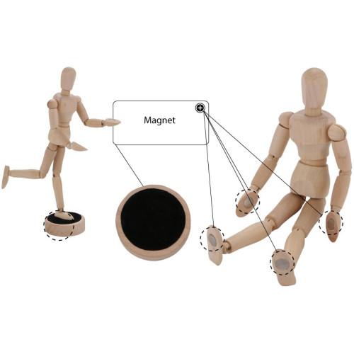 Цей манекен має магніти на руках і ногах, що дозволяє йому бути прикріпленим до металевих поверхонь.