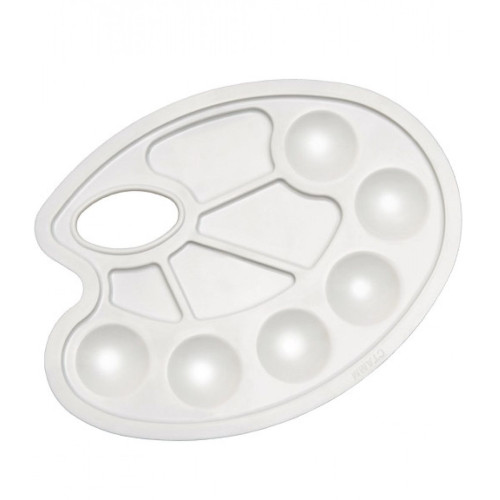 Палітра пластикова - невелика тонка і легка дошка овальної форми, на якій художник змішує фарби під час роботи.