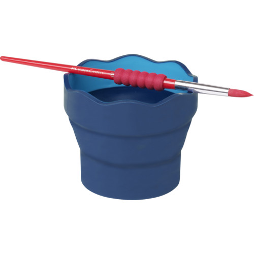 Склянка для води Faber-Castell CLIC&GO виготовлена з жорсткого пластику і покрита м'якою гумою. Склянка складається з декількох секцій.