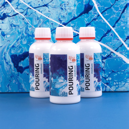 Pouring медіум від ROSA TALENT забезпечує ідеальну текучість акрилових фарб та стримує їх від змішування між собою для створення неймовірних поєднань кольорів в техніці Fluid Art.