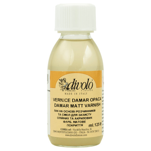 ВЛАСТИВОСТІ ТА ЗАСТОСУВАННЯ: Матовий дамарний лак використовується після завершення витвору мистецтва, або реставраційного проекту для створення ефективної захисної плівки від пилу, жиру, диму, подряпин, атмосферних впливів та старіння.