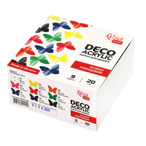 Набір акрилових фарб для декору, глянц, 9 кол*20мл, ROSA Talent, 90747256