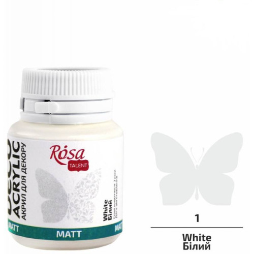 Акрил для декору, Білий, мат, 20 мл, ROSA Talent, 20001