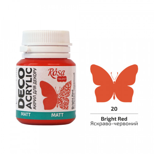 Акрил для декору, Яскраво-червоний, мат, 20 мл, ROSA Talent, 20020