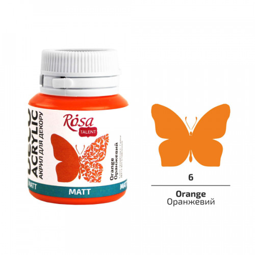 Акрил для декору, Оранжевий, мат, 20 мл, ROSA Talent, 20006