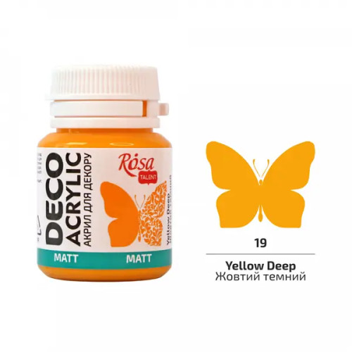 Акрил для декору, Жовтий темний, мат, 20 мл, ROSA Talent, 20019