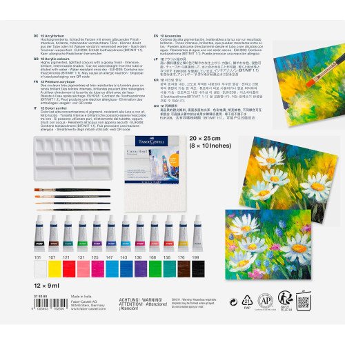 Набір акрилових фарб, 12 кол*9 мл, туби (+4 пензля, 1 палітра, 1 полотно), Faber-Castell, 379280