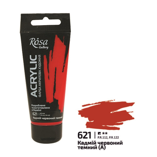 Фарба акрилова, Кадмій червоний темний, 60мл, ROSA Gallery, 3241621