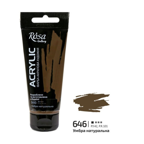Фарба акрилова, Умбра натуральна, 60мл, ROSA Gallery, 3241646
