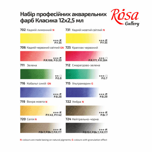 Художні акварельні фарби ROSA Gallery розроблені для професійного живопису з урахуванням вимог та рекомендацій художників.