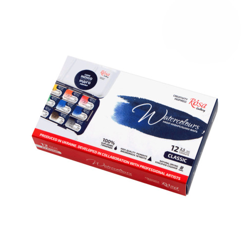 Набір акварельних фарб CLASSIC, 12*2,5мл, кювета, індіго метал. пенал, ROSA Gallery, 3403112