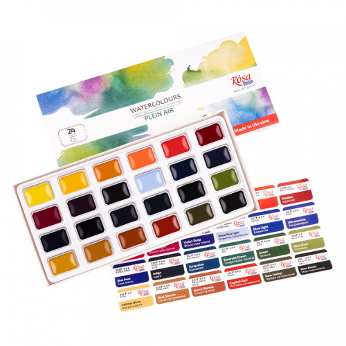 Набір акварельних фарб PLEIN AIR, 24*2,5мл, кювета, картон, ROSA Studio, 3405002