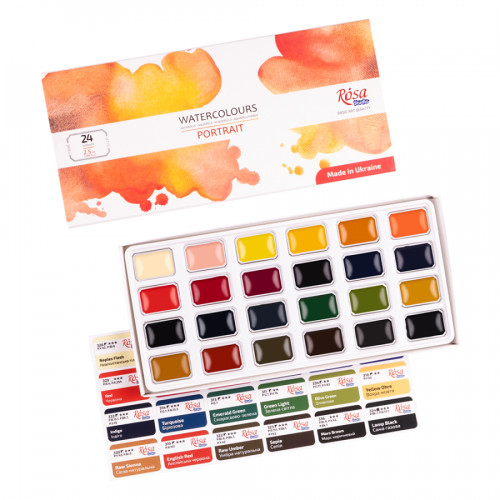 Набір акварельних фарб PORTRAIT, 24*2,5мл, кювета, картон, ROSA Studio, 3405004