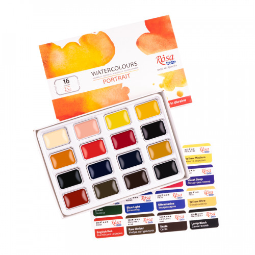 Набір акварельних фарб PORTRAIT 16*2,5мл, кювета, картон, ROSA Studio, 3405003