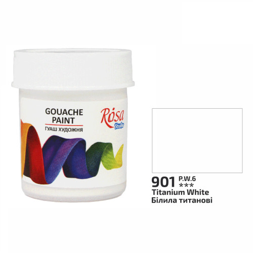 Фарба гуашева, Білила титанові, 40мл, ROSA Studio, 324901