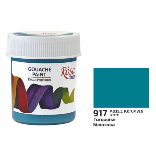 Фарба гуашева, Бірюзова, 40мл, ROSA Studio, 324917