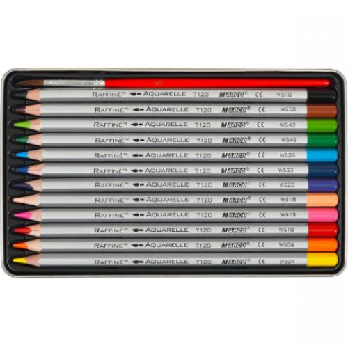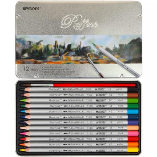 Набір акварельних олівців Raffine, 12 кол, метал. пенал, Marco, 7120-12TN