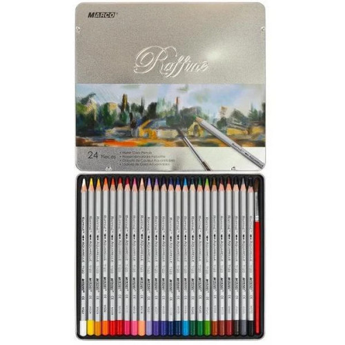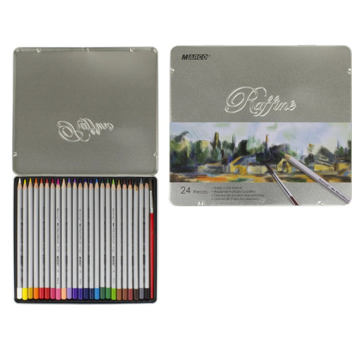 Набір акварельних олівців Raffine, 24 кол, метал. пенал, Marco, 7120-24TN