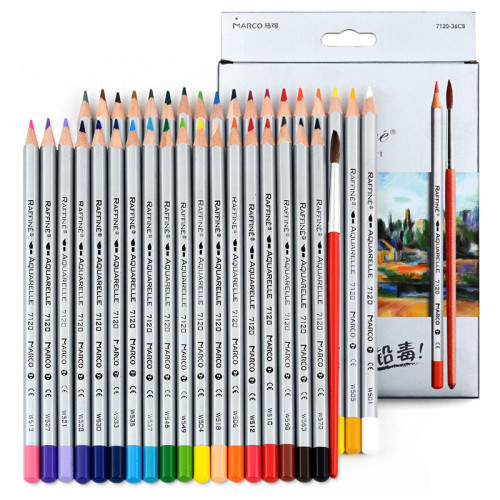 Акварельні олівці Marco Raffine виготовлені із натуральних матеріалів. Корпус виготовлений з деревини липи, має ергономічну форму. Він чудово лежить у руці, легко піддається заточенню. Грифель м'який, забезпечує точну передачу кольору. У верхній частині кожного олівця передбачено колірне маркування, що дозволяє швидко ідентифікувати потрібний відтінок. Олівці відмінні для малювання у різних техніках, у тому числі на вологому папері.