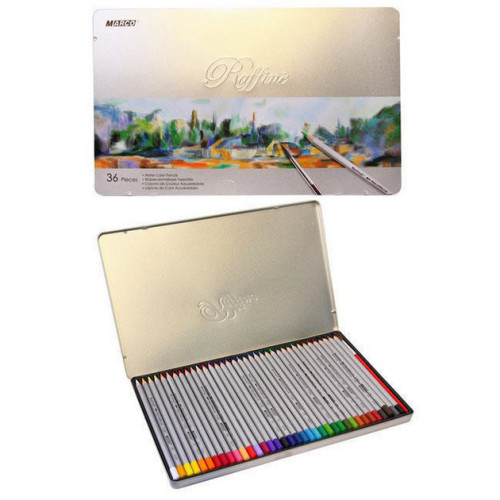 Набір акварельних олівців Raffine, 36 кол, метал. пенал, Marco, 7120-36TN