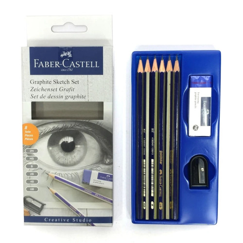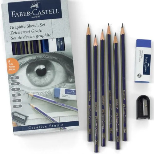 Набір для скетчу Faber-Castell Graphite Sketch Set з 8 предметів, ідеально підійде для нарисів або ескізів, як для початківців, так і для професійних художників.