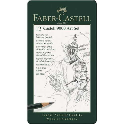 Набір із 12 чорнографітних олівців Faber-Castell CASTELL® 9000 різних твердості в металевій коробці.