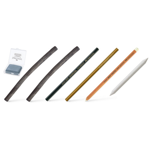 Набір для малювання "Вугілля" Charcoal Sketch set німецької компанії Faber-Castell з 7 предметів у картонній коробці.
