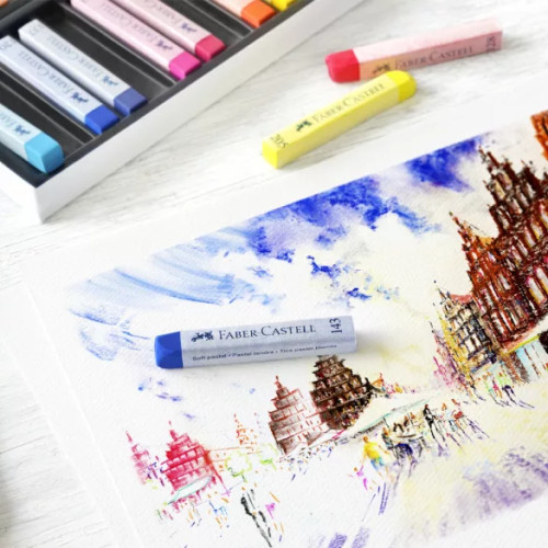 Набір м'якої сухої пастелі Soft Pastels від Faber-Castell з 12 кольорів у картонній коробці.