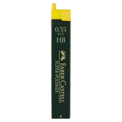 Запасні грифелі Super-Polymer для механічних олівців діаметром 0,35 мм німецької торгової марки Faber-Castell ступінь твердості НВ, 12 штук у пеналі.