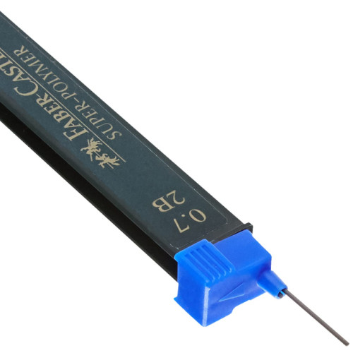Запасні грифелі Super-Polymer для механічних олівців діаметром 0,7 мм німецької торгової марки Faber-Castell ступінь твердості 2В, 12 штук у пеналі.