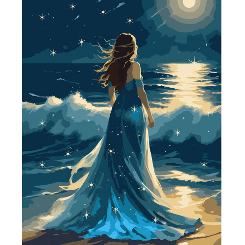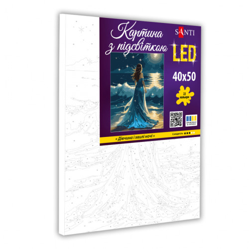 Картина за номерами, Дівчина і хвилі ночі, 40*50см, LED підсвітка, Santi, 955105