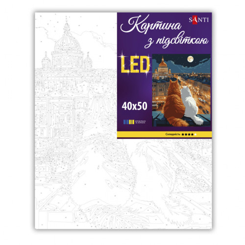 Картина за номерами, Коти на даху, 40*50см, LED підсвітка, Santi, 956646