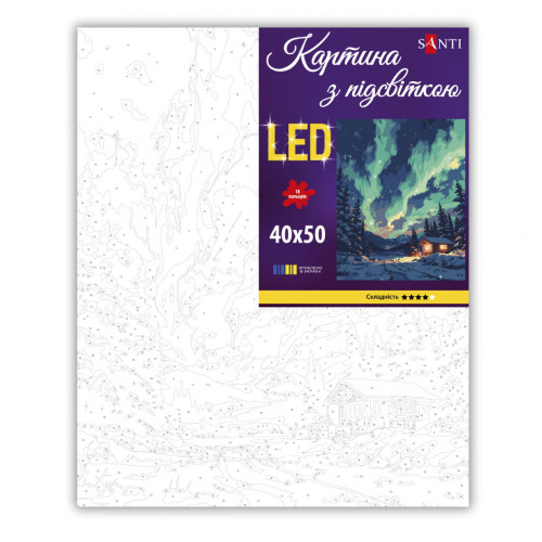 Картина за номерами, Північне сяйво, 40*50см, LED підсвітка, Santi, 956655