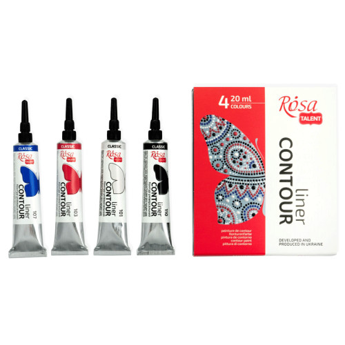Набір контурів універсальних, класичні кольори, 4*20 мл, ROSA Talent, 136000