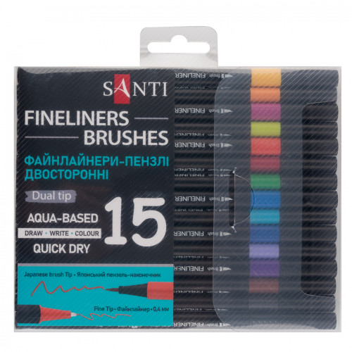 Набір лайнерів-пензлів, 15 кол, двосторонні, Santi, 390996