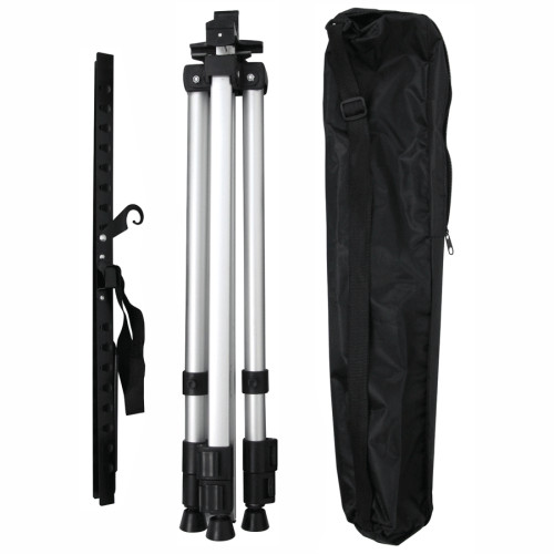 Телескопічні ніжки складаються з трьох сегментів, що закріплюються надійними фіксаторами-кліпсами. Також в комплект входить спеціальна підставка для установки полотна.