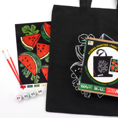 Набір, екосумка-розмальовка, чорна, Кавуни, бавовна 200 г/м2, 38х42см, ROSA Talent, N0003660