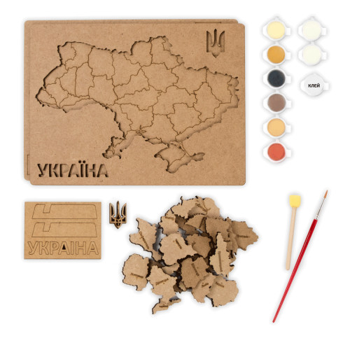 Мапа України 3D - чудове рішення для дозвілля та навчання. Адже, збираючи та розбираючи карту-пазл, діти з легкістю запам'ятають назви обласних центрів та їх географічне розташування. Зібрану та розфарбовану композицію можна поставити на стіл (за допомогою двох підставок, які йдуть в комплекті) або прикріпити на стіну (за допомогою отворів на звороті основи).