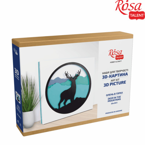 Набір-картина 3D, Олень в горах, ДВП грунтоване, 6 шарів, 30х30см, ROSA TALENT, N0003504
