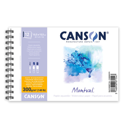Альбом для акварелі на спіралі MONTVAL, 10,5*15см, 300г/м2, 12л, серед зерно, Canson, C200807154