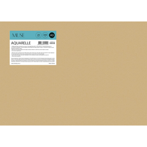 Папір для акварелі, в папці, A3+, 20арк, 300г/м2, MUSE, PD-A3-044