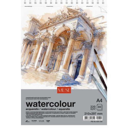 Скетчбук для акварелі, А4, 30 арк, 220 г/м2, пружина, MUSE, PB-SC-030-399
