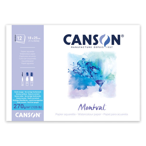 Папір серії Montval виготовлений зі 100% високоякісної целюлози білого відтінку. Дана серія паперу не містить кислот та відбілювачів, а також стійкий у використанні. Папір підходить для всіх "мокрих" технік: акварелі, гуаші, акрилової фарби.