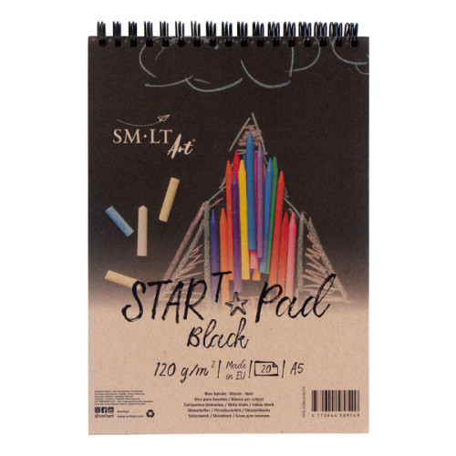 Альбом для рисунку на спіралі STAR T, А5, 120г/м2, 20л, чорний папір, SMILTAINIS, 5PS-20/BLACK/T