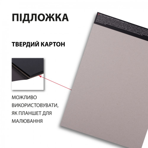 Скетчбук ТМ SANTI підходить для роботи білою гелевою ручкою чи олівцем, спеціальними ручками або маркерами для малювання на чорному папері, пастельними крейдами чи олівцями тощо.