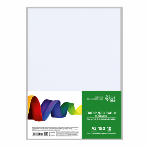 Папір для гуаші А3, пакет, 180г/м2, 10л, др. зерно, ROSA Studio, 16922013