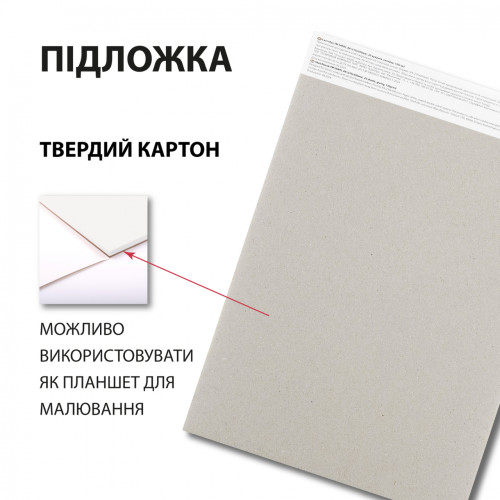 Всередині 20 аркушів гладкого білого паперу щільністю 130 г/м². Завдяки гладкій поверхні маркер легко ковзає по аркушу, а лінії лягають рівно та чітко. Папір не вбирає і не пропускає чорнило спиртових маркерів, запобігаючи його просочуванню на зворотний бік. Це дозволяє працювати з насиченими кольорами без ризику зіпсувати наступні сторінки.