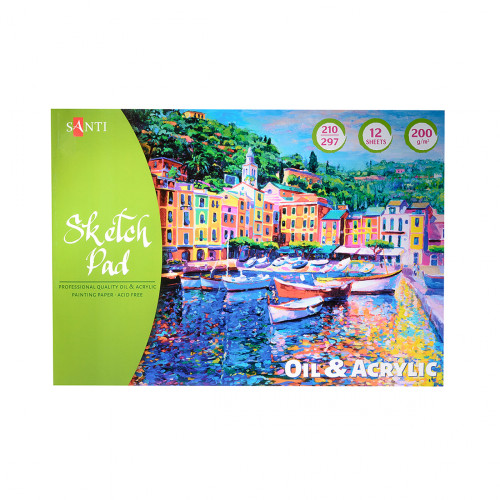Альбом для олійних і акрилових фарб, 200 г/м2, А4, 12 арк, Santi, 742548