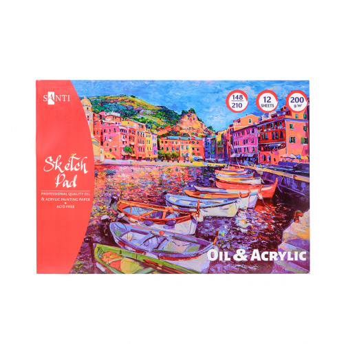 Альбом для олійних і акрилових фарб, 200 г/м2, А5, 12 арк, Santi, 742549