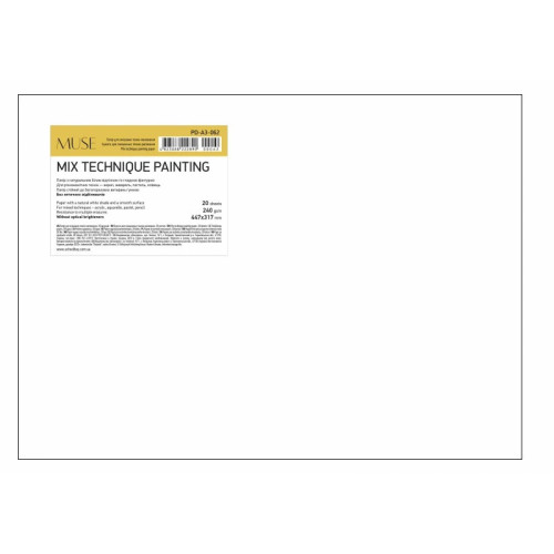 Папір для змішаних технік, A3+, 20арк., 240г/м2, MUSE, PD-A3-062